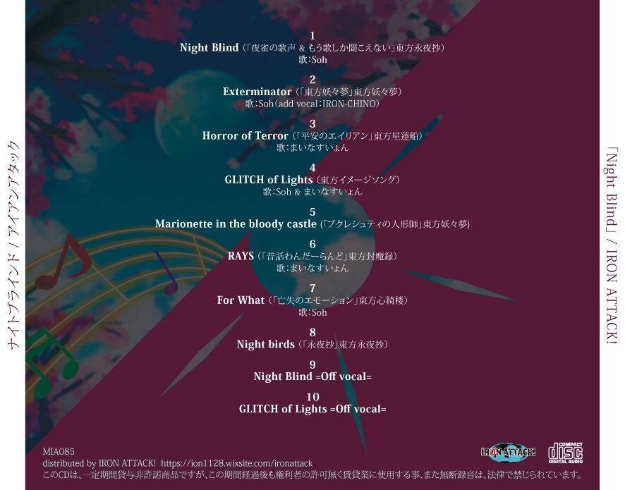 1、Night blind(「夜雀の歌声 & もう歌しか聞こえない」東方永夜抄)